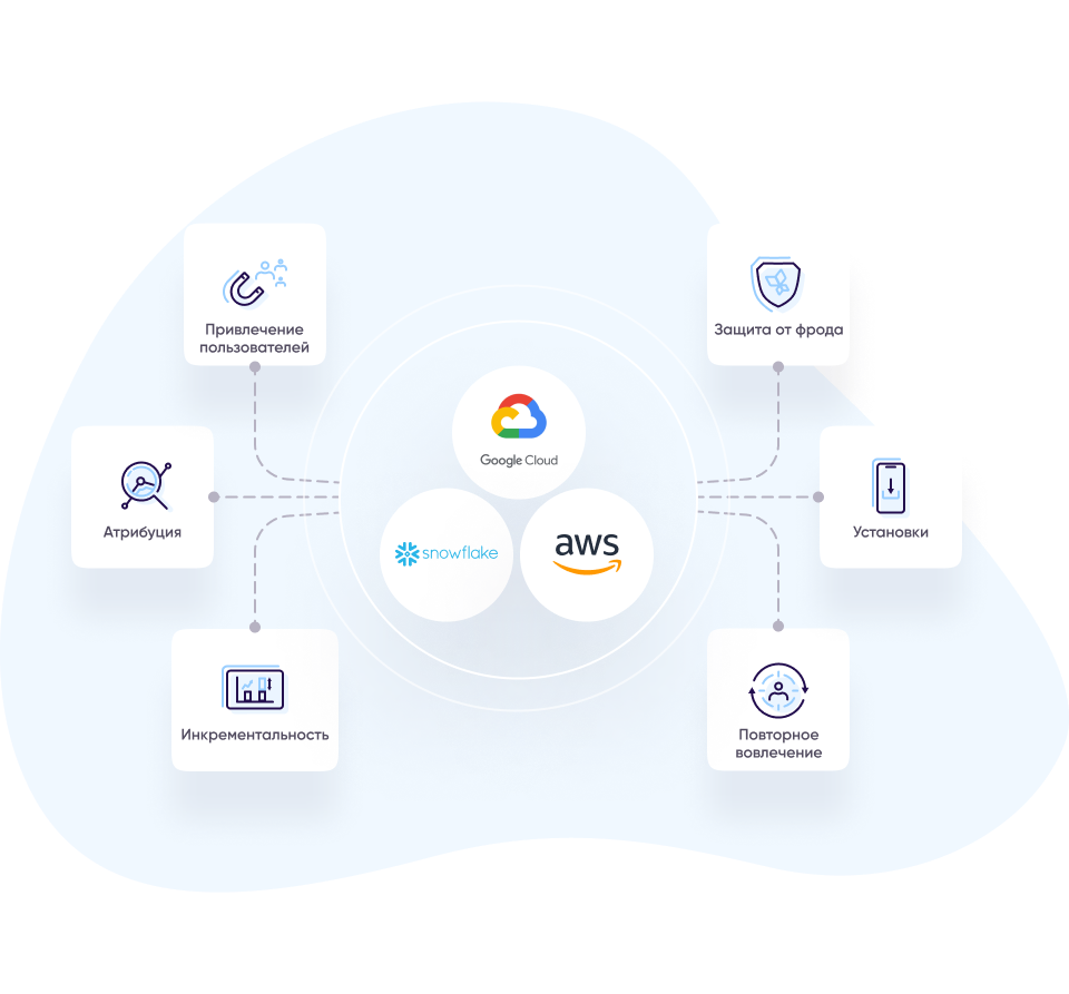 Синхронизируйте все данные атрибуции и маркетинговой аналитики с вашими внутренними платформами BI для быстрой оптимизации или углубленного анализа.