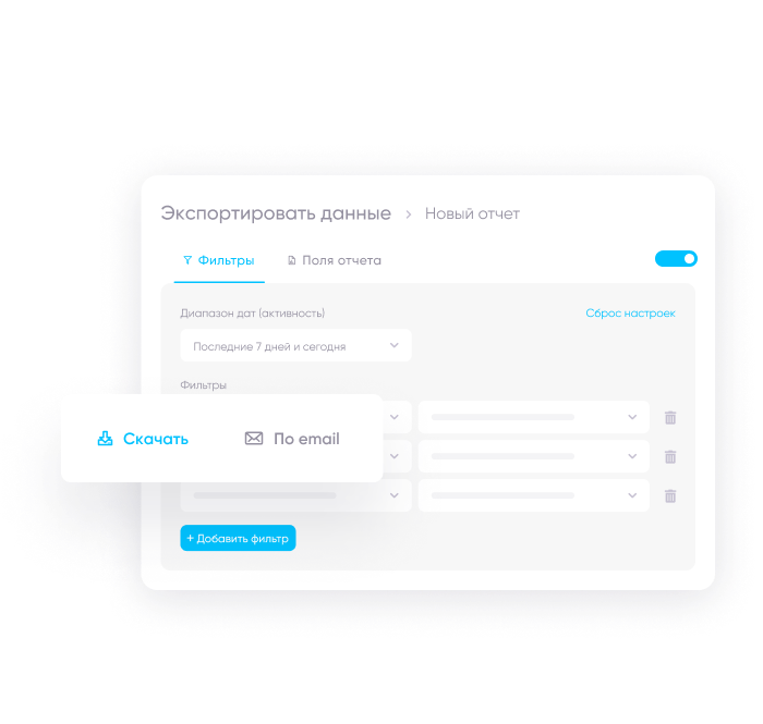 У вас будет доступ к своим данным в любое время, скачивайте их в формате CSV или получайте их ежедневно по электронной почте. Вы можете выбирать между различными элементами данных и событиями в приложении, а также создавать шаблоны для вашей команды.