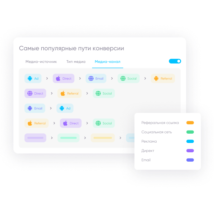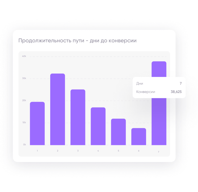 Получите все, что нужно для понимания кросс-канального пути пользователя, сокращения времени до конверсии, поддержания вовлеченности и повышения ROI.