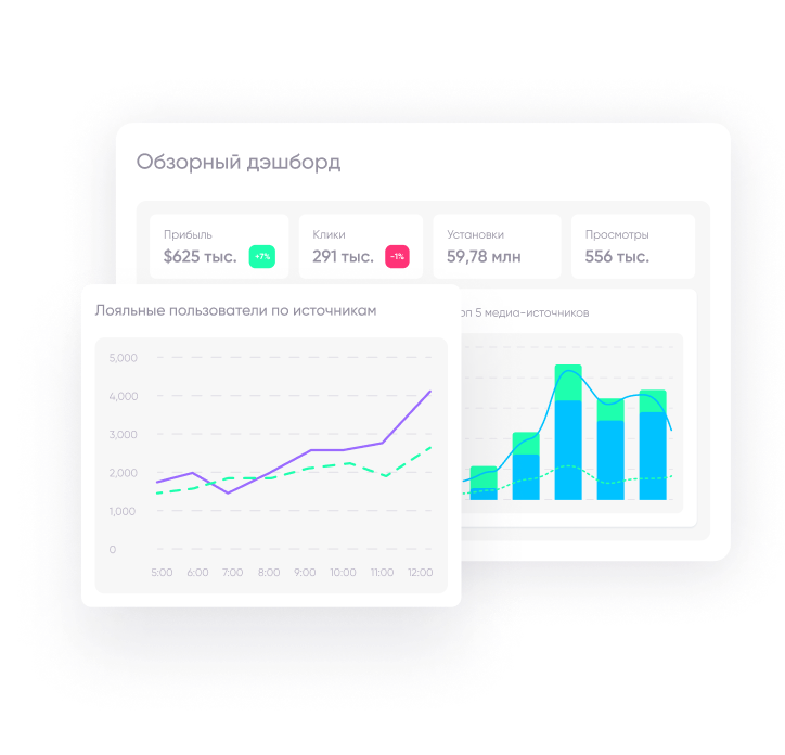 Откройте новые источники дохода, эффективно распределяйте свой UA-бюджет и улучшайте ROAS с помощью полного измерения воронки на всех платформах и устройствах.