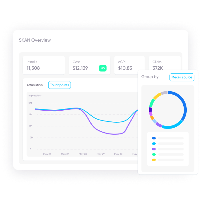 When you’re ready to reel in more revenue, we’ve got you covered. Get tailor-made recommendations for optimized SKAN revenue measurement based on your user’s spending habits with a clear picture of your campaign performance.