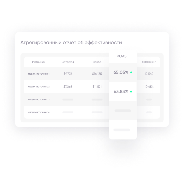 Сопоставлять затраты, доходы и атрибуцию в реальности из фрагментированных и запутанных данных становится все труднее и требует больше времени, чем раньше. Мы решаем эту проблему за вас, консолидируя данные о затратах из всех рекламных сетей и связывая их со всеми источниками доходов. Конечный результат: полное и точное представление о вашей истинной окупаемости инвестиций, которое легко превратить в действие.